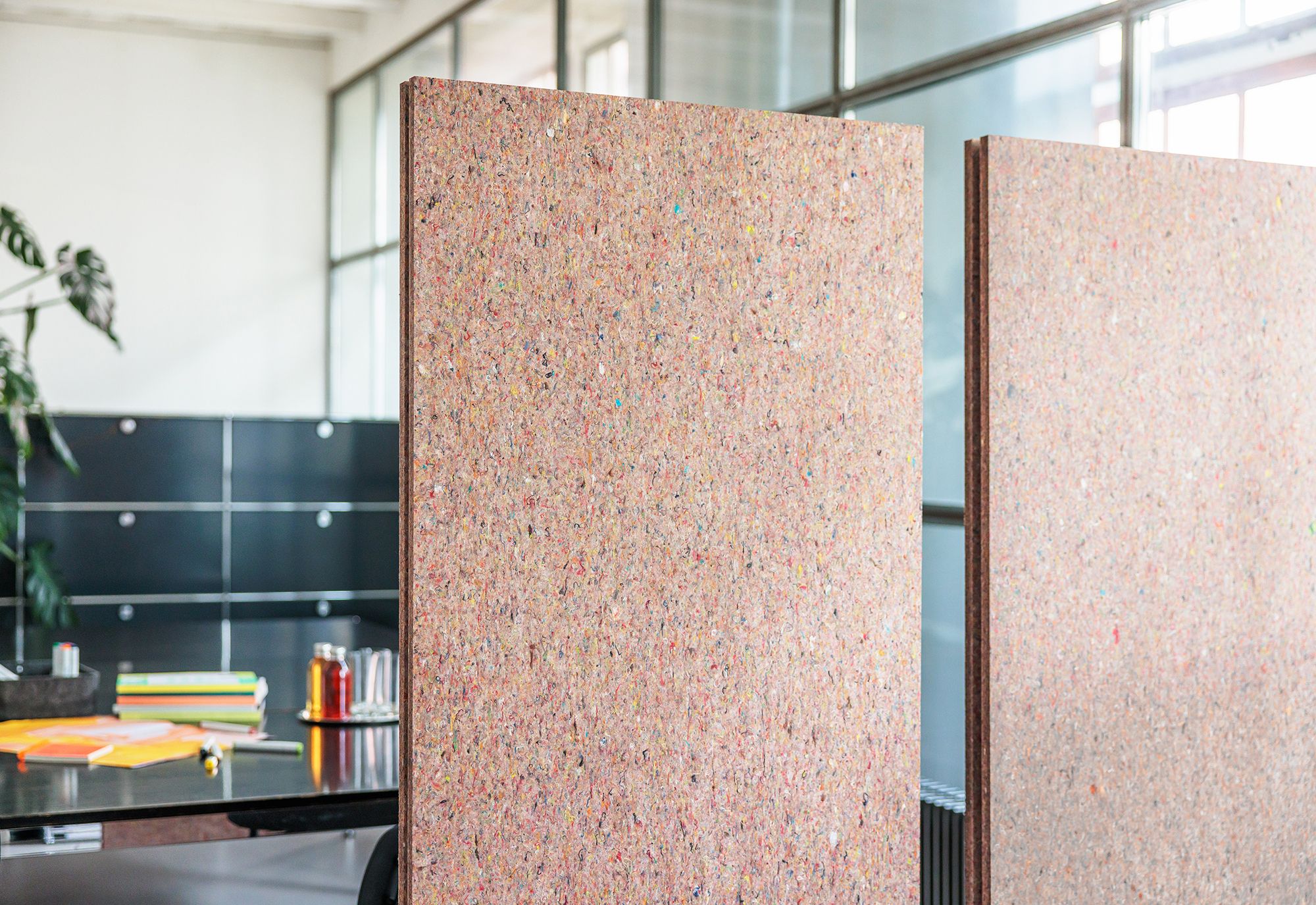 Die recycelten Absorberplatten «ABSORBER RECYCLED» verwandeln Resttextilien in eine nachhaltige Akustiklösung für moderne Räume. Als effiziente Akustikpaneele ermöglichen sie Architekt:innen und Innenarchitekt:innen die gezielte Steuerung von Geräuschkulissen – von Büros und Home-Offices bis zu offenen Wohnbereichen.