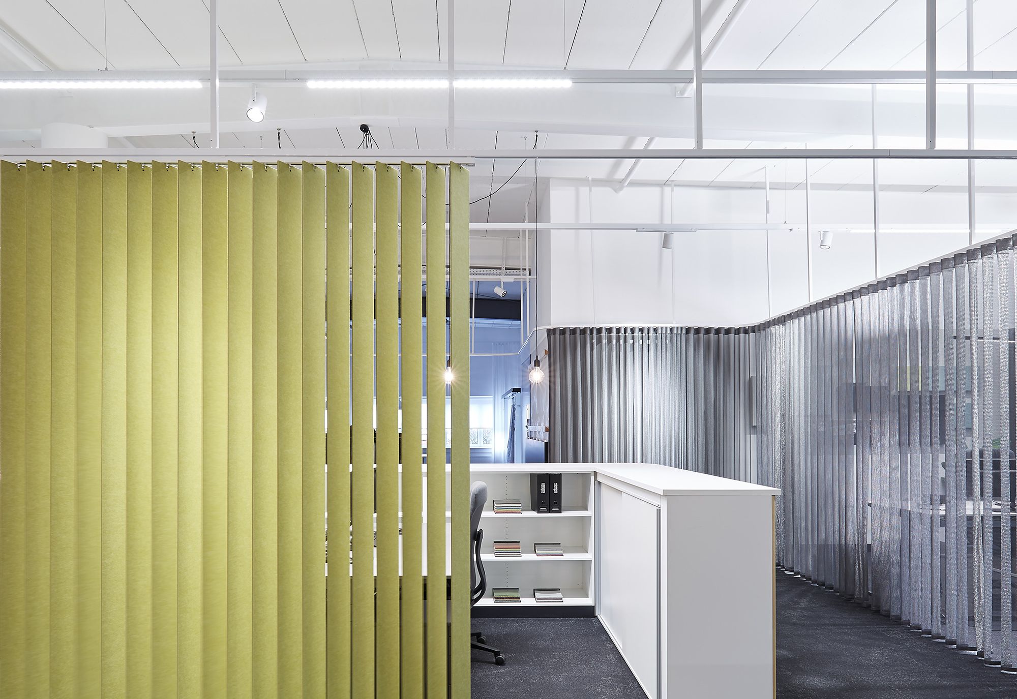 Our curtain rails can be installed on the ceiling or wall. The rails can also be curved. This creates further interior design possibilities: Curtain fabrics and curved rails, for example, can be used to create flexible workstations.