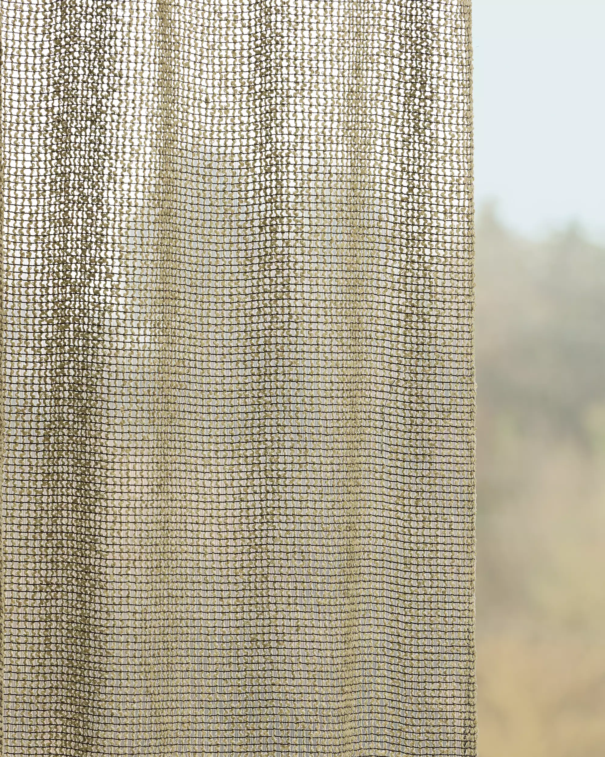 • Halbtransparenter Vorhangstoff; Grida ist ein charaktervolles, flammhemmendes Drehergewebe mit einem bouclé-ähnlichen Effektgarn. Lebendigkeit trifft auf klare Struktur: Das voluminöse Schussgarn verbindet sich mit dem feinen Kettgarn zu einer lebendigen, ausgewogenen Fläche – eine zeitgemässe Assoziation zu natürlichen Strukturen. Der Dreher entfaltet mit seinem Volumen eine angenehme, warme und wohnliche Präsenz und verführt mit einem modern-natürlichen Spirit. Die Farbpalette reflektiert eine aktuelle Farbigkeit und reicht von neutralen Grau- und Leinentönen über warme Erdtöne bis zu leuchtendem Grün.
